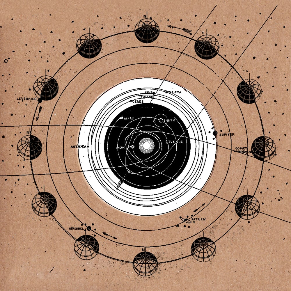Ethereal Transects is a compilation album and booklet exploring the lore of celestial objects through experiments in sound and vision. Each contributor has researched a particular orb and - inspired by the tapestry of its myth and legend - fashioned an original soundscape in its likeness. The result is an audio voyage around the observable universe, stopping off at its well known landmarks - the Sun and Moon, Mercury and Venus, Mars and Jupiter, and on further, to Saturn, Uranus, Neptune and Pluto. Accompanying us on the trip are the voices of ages past, who whisper strange-nothings in our ears about the sights we see as we traverse the inky black.